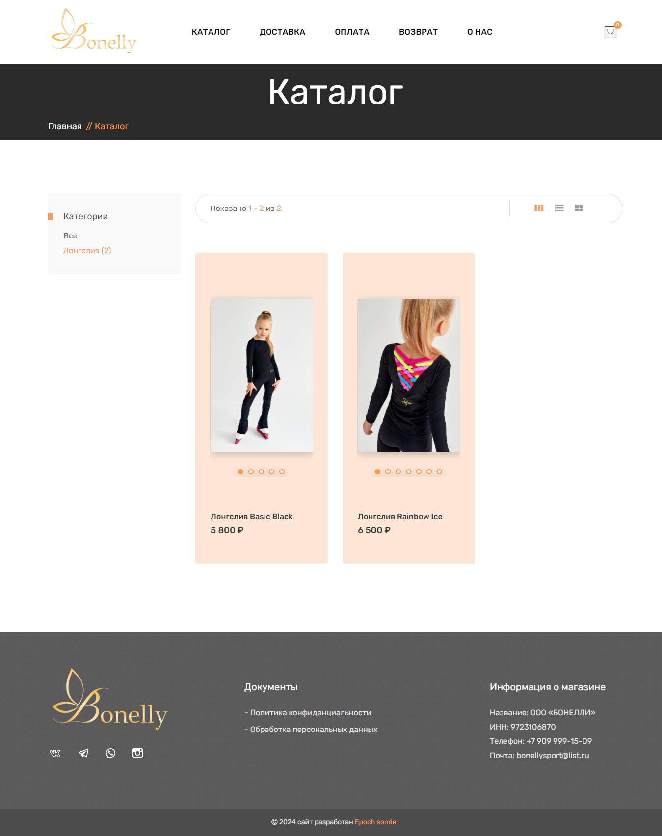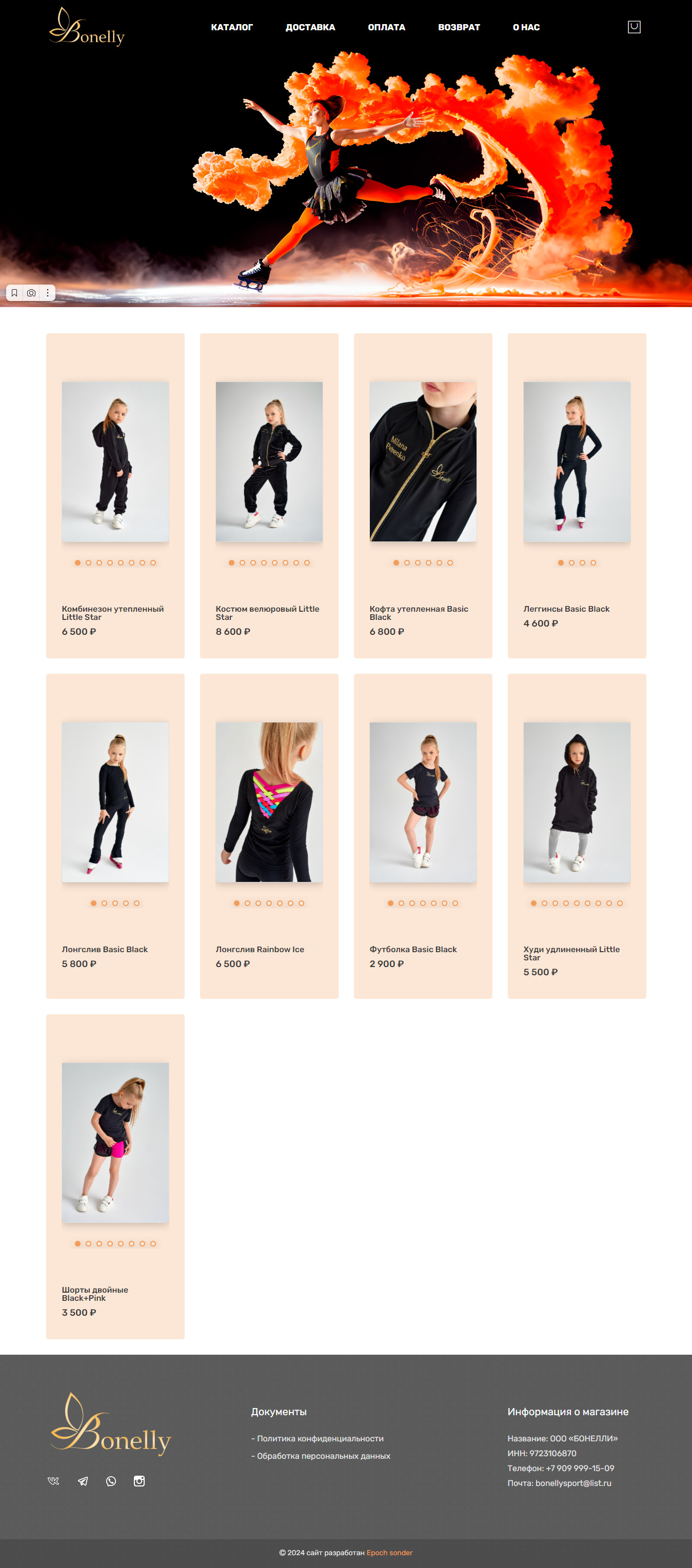 Компания "Bonelly" специализируется на производстве и продаже детской одежды для фигурного катания. Их продукция ориентирована на спортсменов всех уровней – от начинающих любителей до профессиональных фигуристов. Имеют собственное производство