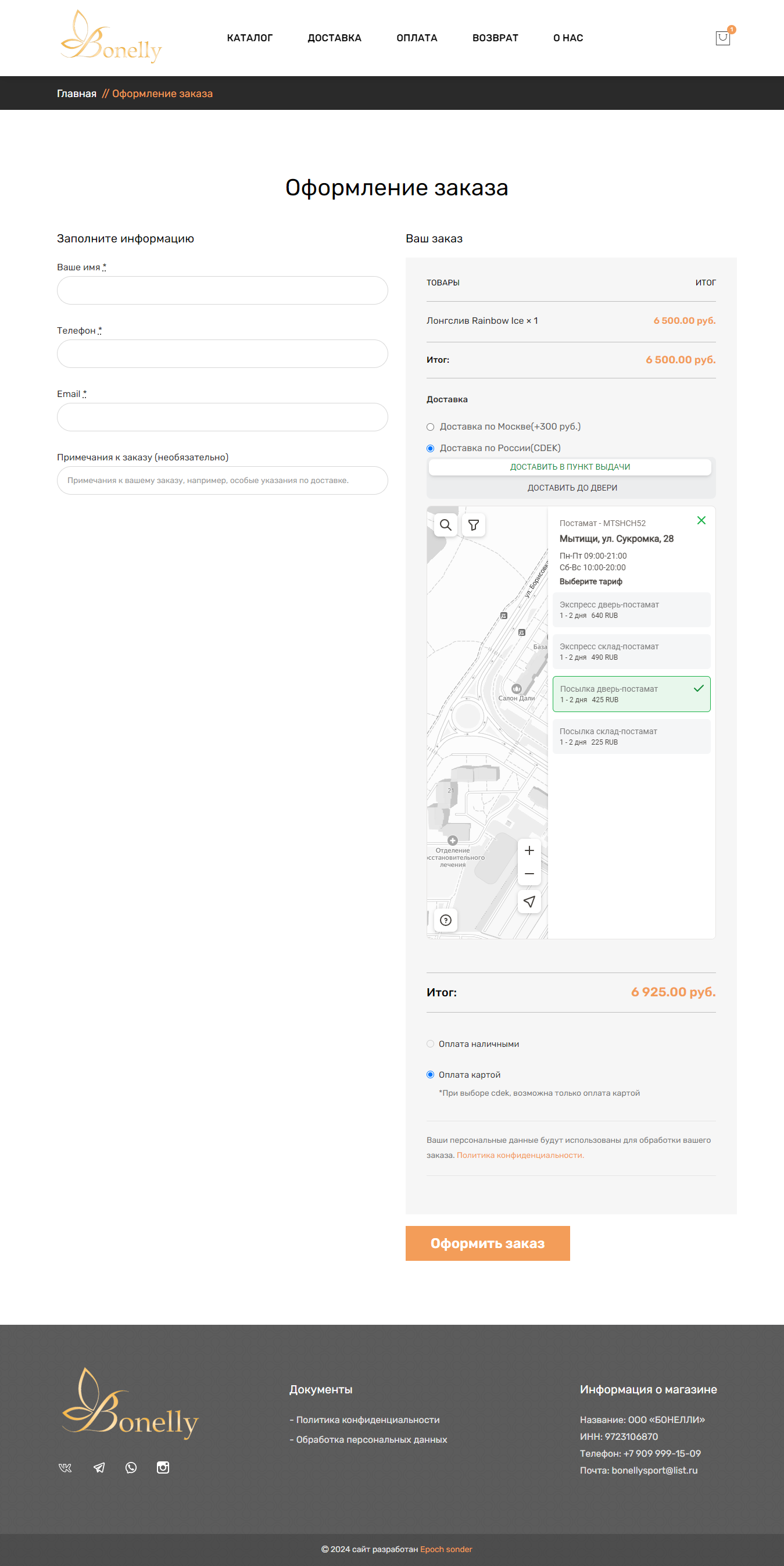 Было выполнено подключение API курьерской службы СДЭК, предоставляющее клиентам возможность онлайн-расчета стоимости доставки товаров