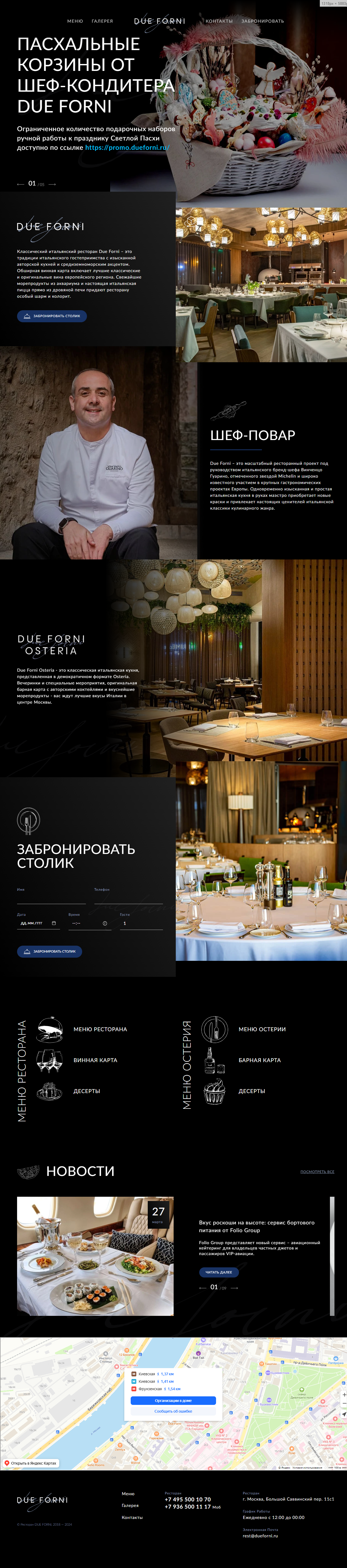 Ресторан "Due Forni" предлагает изысканное путешествие в мир авторской итальянской кухни, где каждое блюдо – это произведение кулинарного искусства.